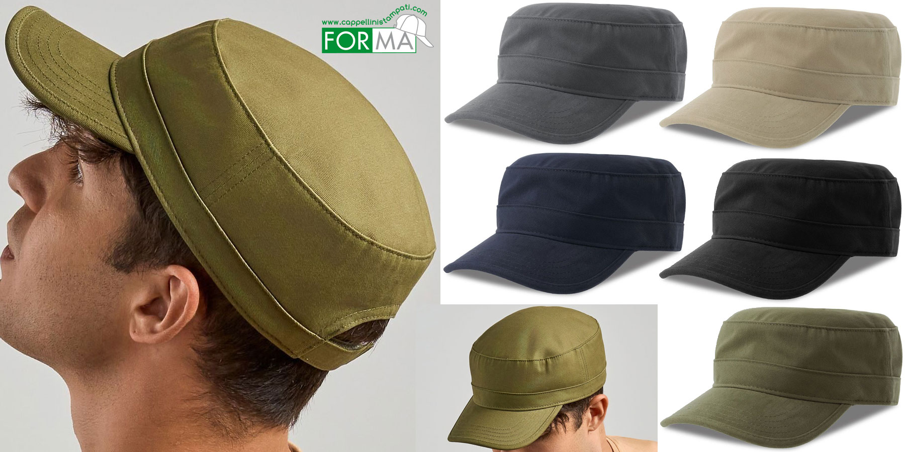 Cappellino con forma militare in cotone con retro in rete mesh traspirante |